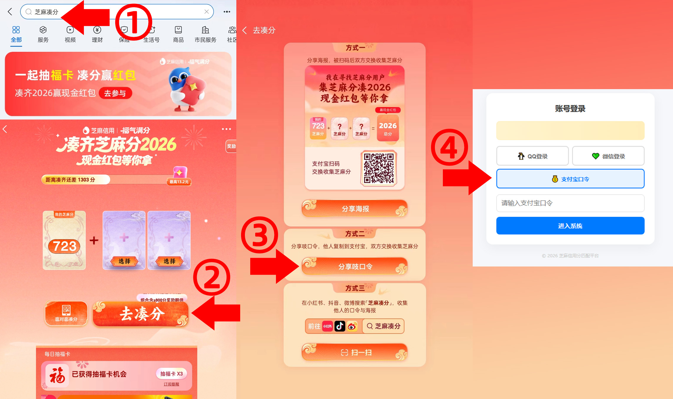 | 如果不是为了凑2026,可以优先用支付宝口令方式登陆进去| 这样合适的分数自己复制到支付宝加入即可。